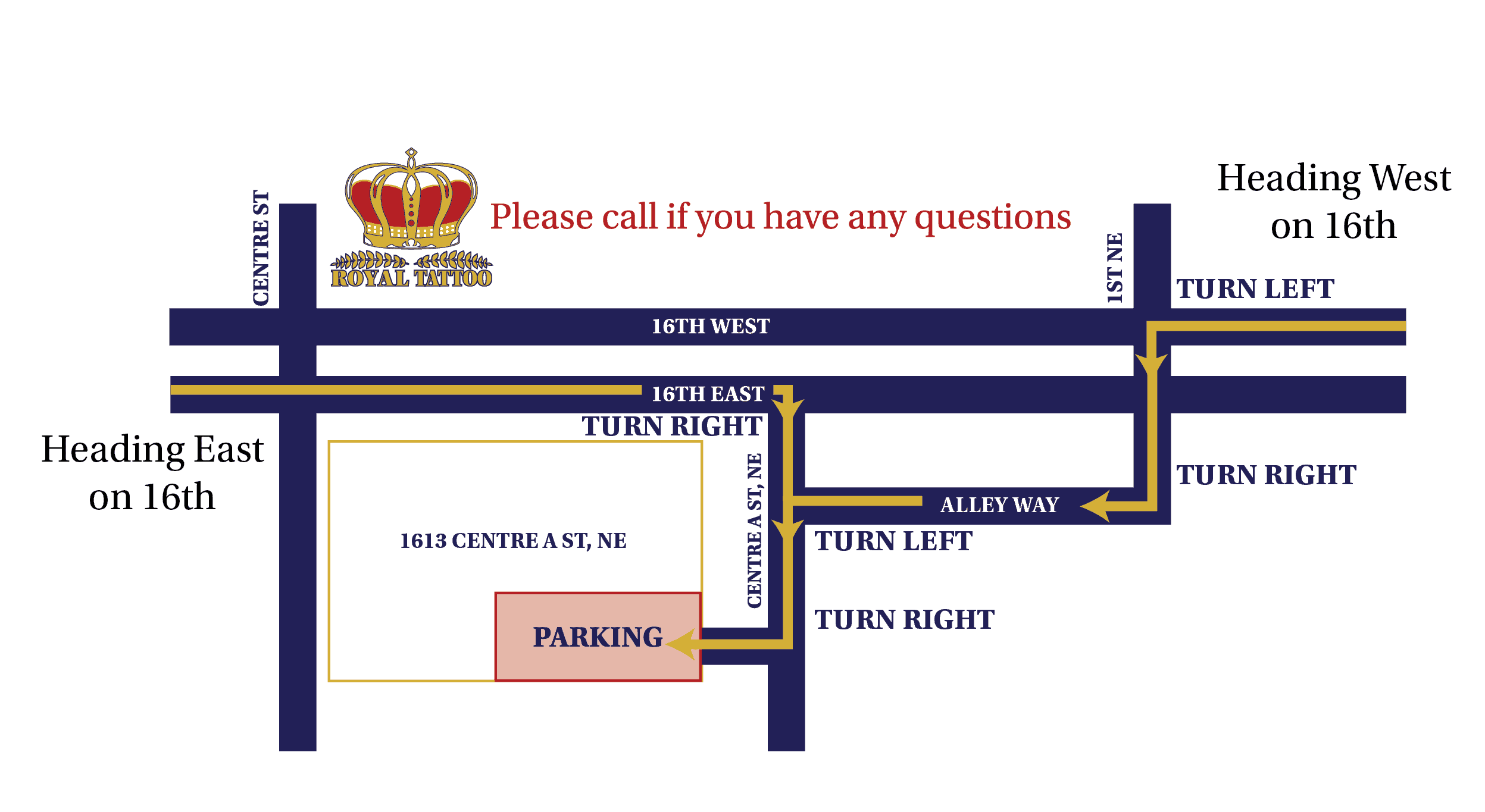 Here at Royal Tattoo we offer custom tattoos and piercing services. We strive to make sure you feel comfortable and welcome in our clean, private and spacious rooms. Walk-ins are welcome at our studio so you don't have to worry about making an appointment! Our talented Artists will make sure you love your new tattoo, whether it's one of their designs or that custom piece you've been wanting. Welcome to Royal Tattoo, where we bring your vision to reality!